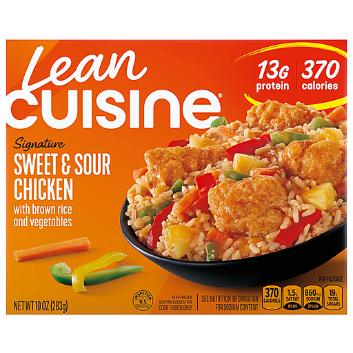Add a kick of protein to your day with a Lean Cuisine Protein Kick Sweet and Sour Chicken Frozen Meal. With 330 calories and 13 grams of protein per package, this easy-to-make Lean Cuisine frozen entree features breaded white meat chicken with brown rice and vegetables in sweet and sour sauce. Enjoy this 10-ounce chicken meal on its own or with a side salad as part of an easy comfort food meal. Pair your Lean Cuisine frozen dinner with soup, or customize it with your favorite add-ons. Quick and easy to prepare, this microwave meal is ready in less than six minutes, making it a convenient lunch, dinner or snack at home or in the office. Lean Cuisine TV dinners are made with premium ingredients for a tasty frozen dinner that rivals take-out. This delicious frozen chicken entree is made with no artificial flavors for a satisfying frozen dinner you can feel good about. Lean Cuisine frozen meals are not your mother’s diet food. You won’t find any fad diets or miracle cures here – just a solid nutritional foundation and great taste. For more Protein Kick meal options from Lean Cuisine, try Shrimp Alfredo or Glazed Chicken.